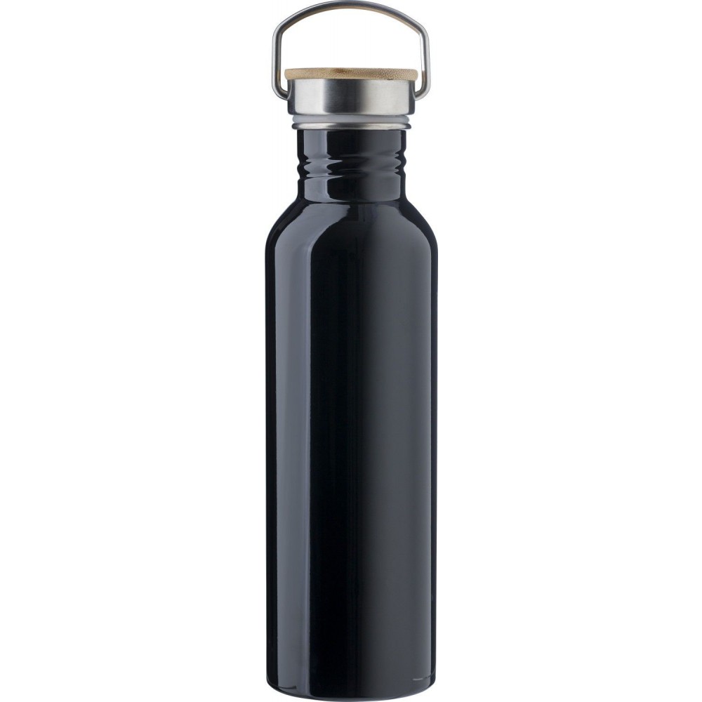 Rozsdamentes acél palack csavaros bambusz kupakkal. 700 ml.