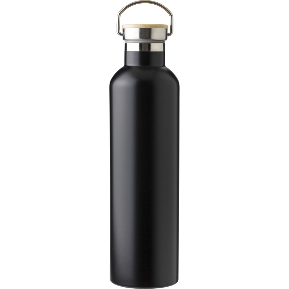Duplafalú palack bambusz betéttel a kupakon. Rozsdamentes acél. Nagy űrtartalmú palack: 1L.