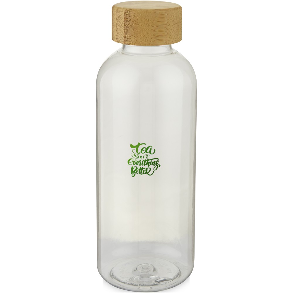 Újrahasznosított műanyagból készült vizes palack, stílusos bambuszfedéllel. A palack BPA-mentes, a német élelmiszer-biztonsági jogszabályok (LFGB) valamint REACH-szabályozás szerinti ftalát-tartalomra tesztelt és jóváhagyott. A bambusz fenntartható, környezetileg és társadalmilag felelős forrásból származik. Mosogatógépben nem mosható. Újrahasznosított kartonból készült díszdobozban szállítjuk. Nagy űrtartalmú palack: 950 ml.