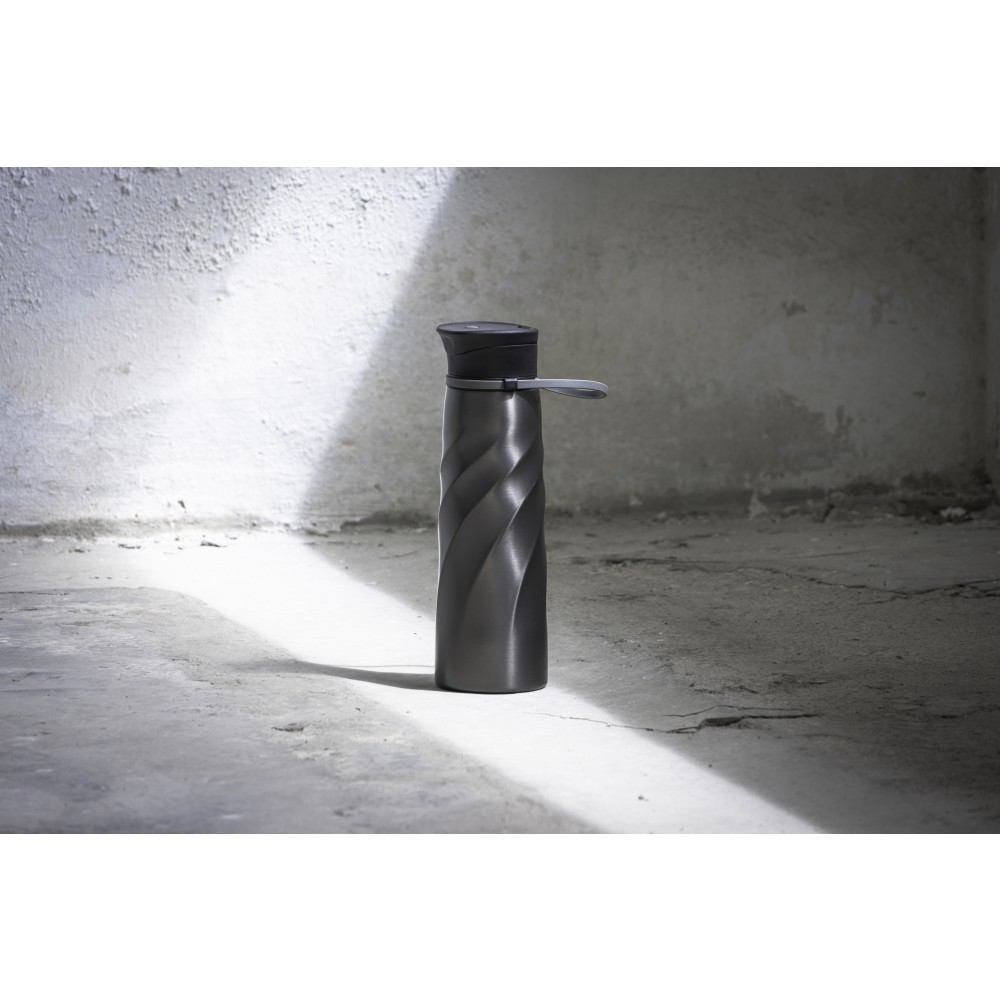 A Vortex Athletica ivópalack a magas funkcionalitást elegáns dizájnnal ötvözi, amely kihangsúlyozza a prémium anyagokat. Könnyű, egyfalú 18/8 rozsdamentes acélból készült, mindössze 238 g súlyú, és a tartósság a fő erénye. A fedél a könnyű tisztítás érdekében teljesen szétszedhető, a rugalmas hordozószíj pedig a személyes igényekhez igazítható. Ennek az 1000 ml-es rozsdamentes acél palacknak minden része mosogatógépben mosható.