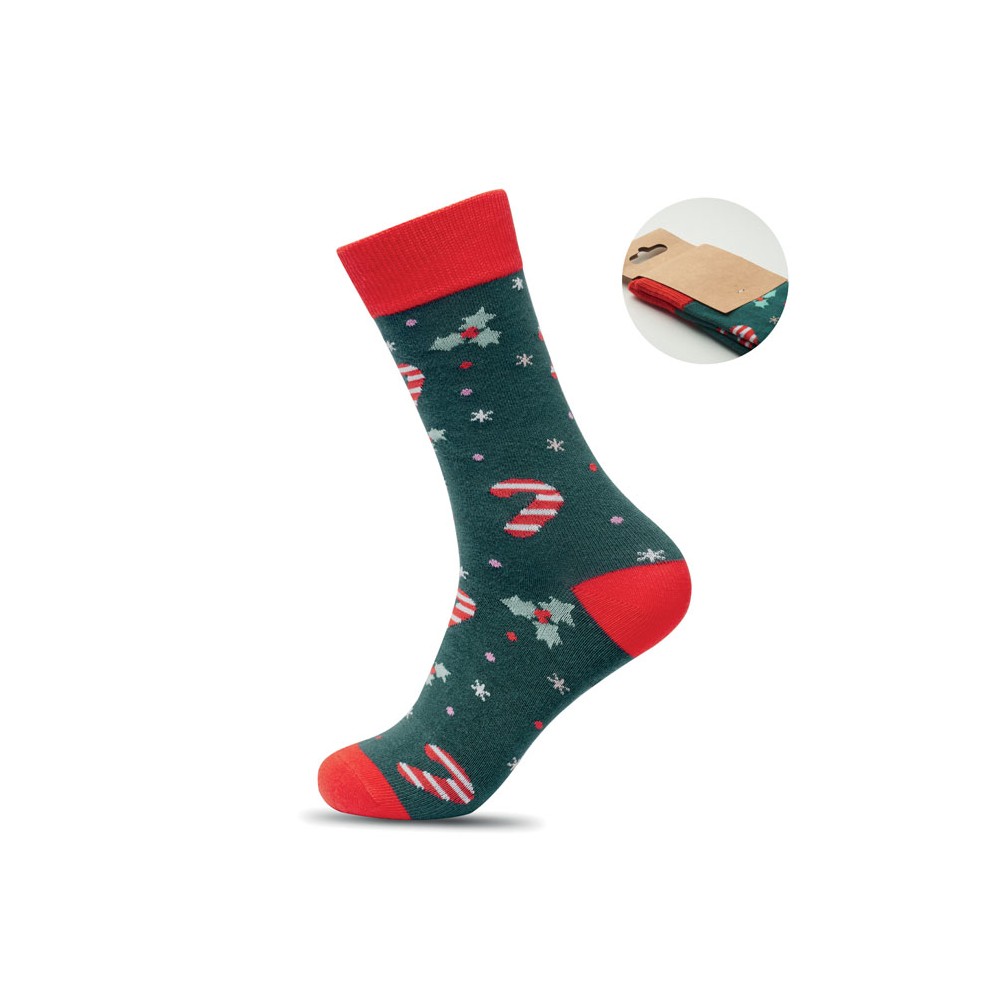 Ünnepi mintás zokni 75% pamut, 23% RPET poliészter és 2% spandex anyagból. L méret: 43-46.
